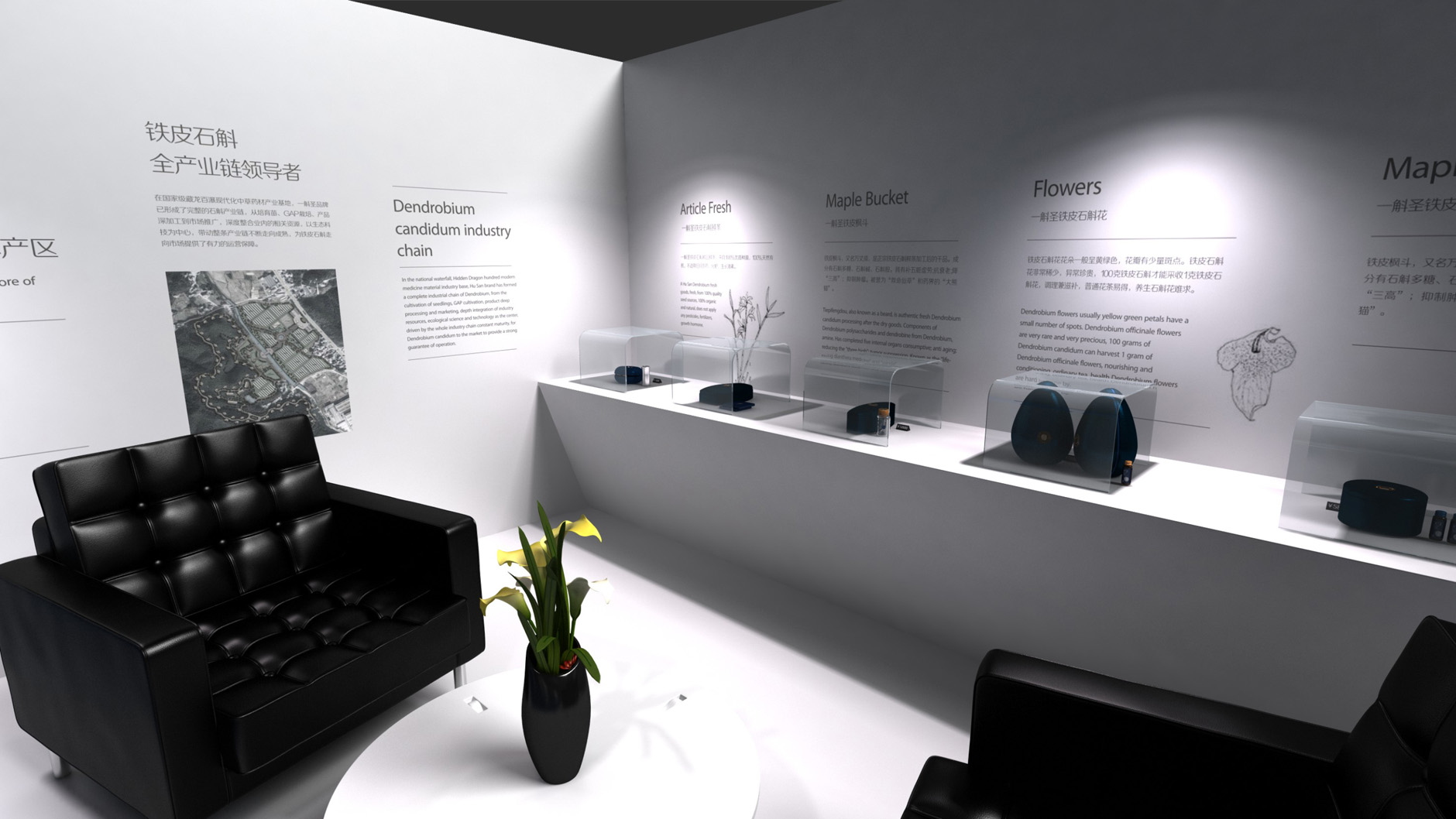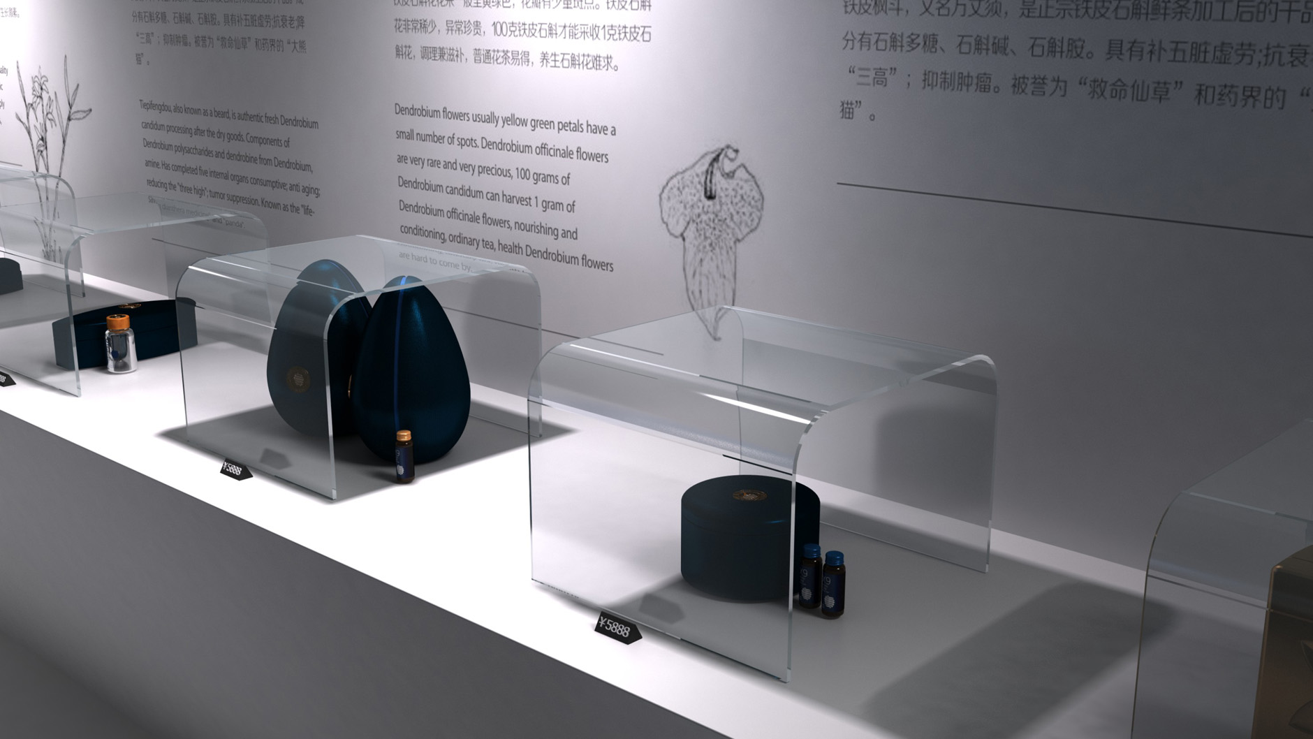秉承一斛圣“科技健康时尚极简”的品牌气质特征,注重设计感,强调简约与尊贵,实现天然产品气质和现代技术感的糅合。通过“大块面分割”、“流体雕塑”、“一体化”等空间设计语言,营造出“扑鼻而来的现代气息”、“简约极致的造型”,从而雕琢出一斛圣品牌独特而清晰的店面视觉印象,赋予一斛圣“铁皮石斛第一品牌”的品牌气质。